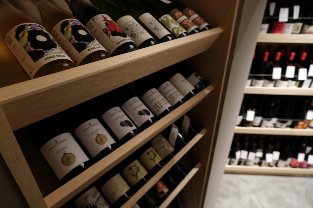 今夜飲むお酒を選ぶことからコースが始まります。お好みのお酒が見つかりましたら幸いです。