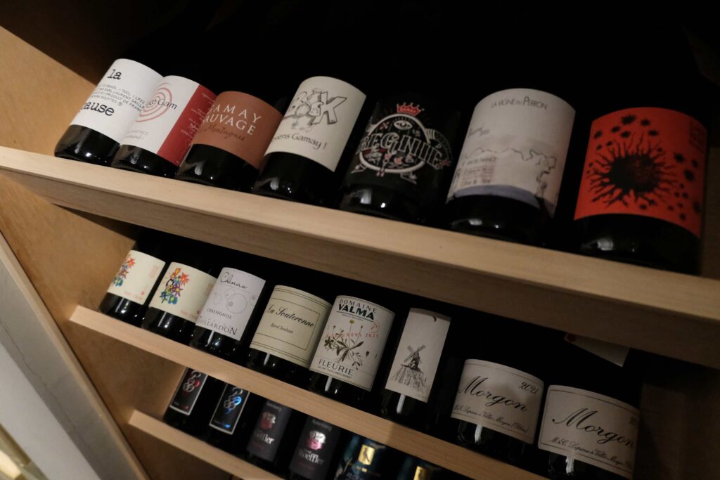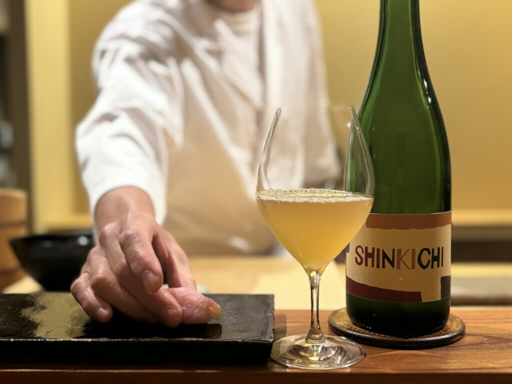 フランス、イタリア、日本のナチュラルワインを中心にご用意しております。ちなみに赤ワインは、95%以上がガメイ品種です。日本一ガメイワインが豊富な鮨屋かもしれません。
